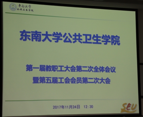 11月24日中午在公卫202教室,bw必威西汉姆联召开第一届教职工大会第二次全体会议暨第五届工会会员第二次大会。会议由学院党委书记李涛主持。