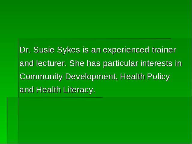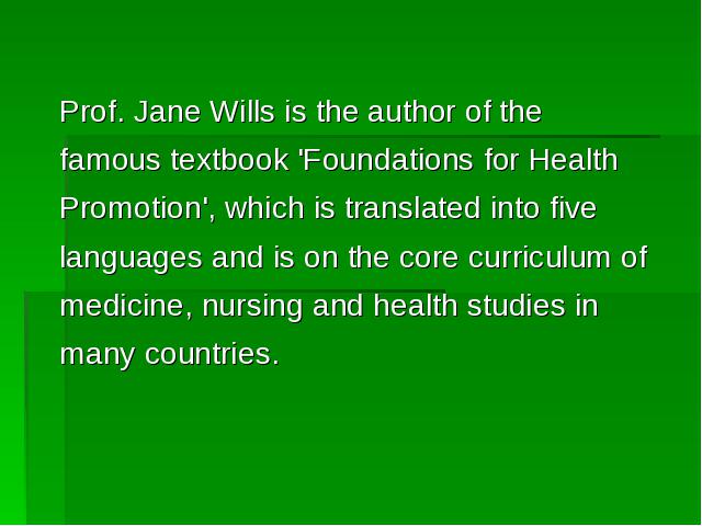 全英文研究生课程health edu & health prom(主讲人 Prof. Jane Wills/ Dr. Susie Sykes)