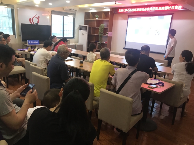 8月7日至9日,团队前往益兴名人湾小区双河社区、郦城国际小区清淮路社区、南园社区三个淮安当地老年人较为集中的社区,通过走访慢性病老年患者、开展社区宣讲、与老党员开展关于“改革开放四十周”的交谈、发放健康知识宣传单、血压检查等活动向老年人普及高发慢性疾病的知识,获得居民与社区工作人员的高度评价。