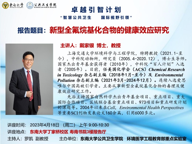 讲座预告 | 新型全氟烷基化合物的健康效应研究