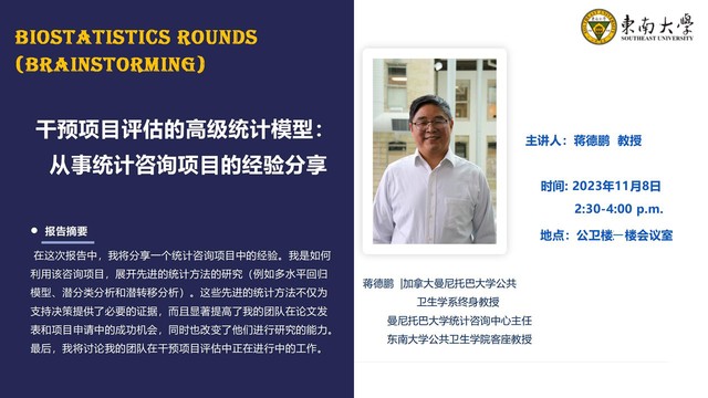 讲座预告 |干预项目评估的高级统计模型:从事统计咨询项目的经验分享