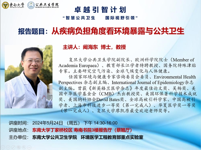 讲座预告 |从疾病负担角度看环境暴露与公共卫生
