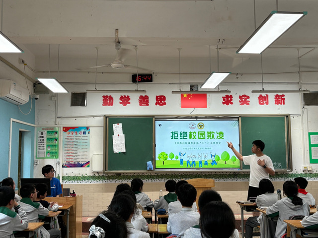 2024年5月10日,来自流统第二党支部、营养党支部的党员带领421221团支部的成员走进南京市第五十中学,面向初一同学开展了《拒绝校园欺凌——勇敢向校园欺凌说“不”》以及《营养共享 健康启航》主题班会。