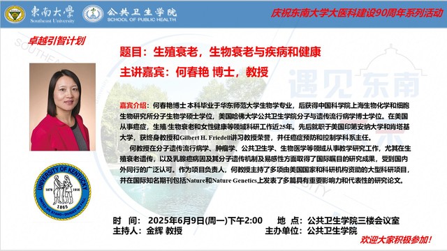 讲座预告 | 生殖衰老,生物衰老与疾病和健康