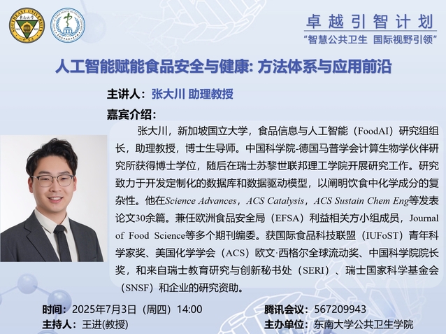 讲座预告 | 人工智能赋能食品安全与健康: 方法体系与应用前沿