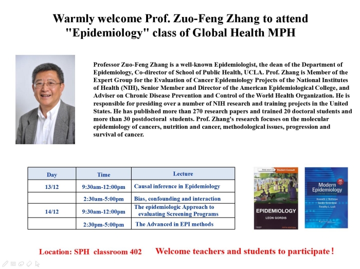 Warmly welcome Prof. Zuo-Feng Zhang to attend "Epidemiology" class of Global Health MPH