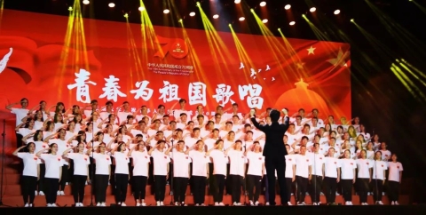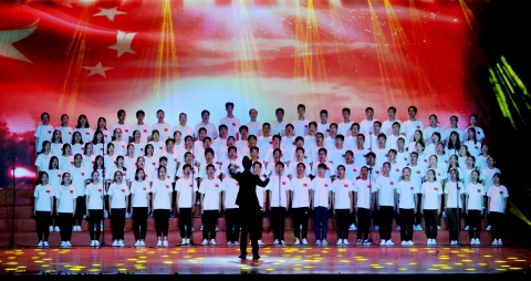 With the lights shining on the stage and the command raising his hands, all teachers and students sung with strong passion. They wore simple and artless costumes, sung with deep affection, saluted in dignified and proud manner, and tributed to the 70th anniversary of the motherland. The five-minute gorgeous performance on the stage was owing to the diligent rehearsal of every student on and outside the court. Since the military training, the members of the choir have gradually mastered the vocal skills of the chorus under the professional guidance from the school choir and the teachers of Nanjing University of the Arts. The repeated practices and rehearsals have led them to become the shining stars on the stage today.