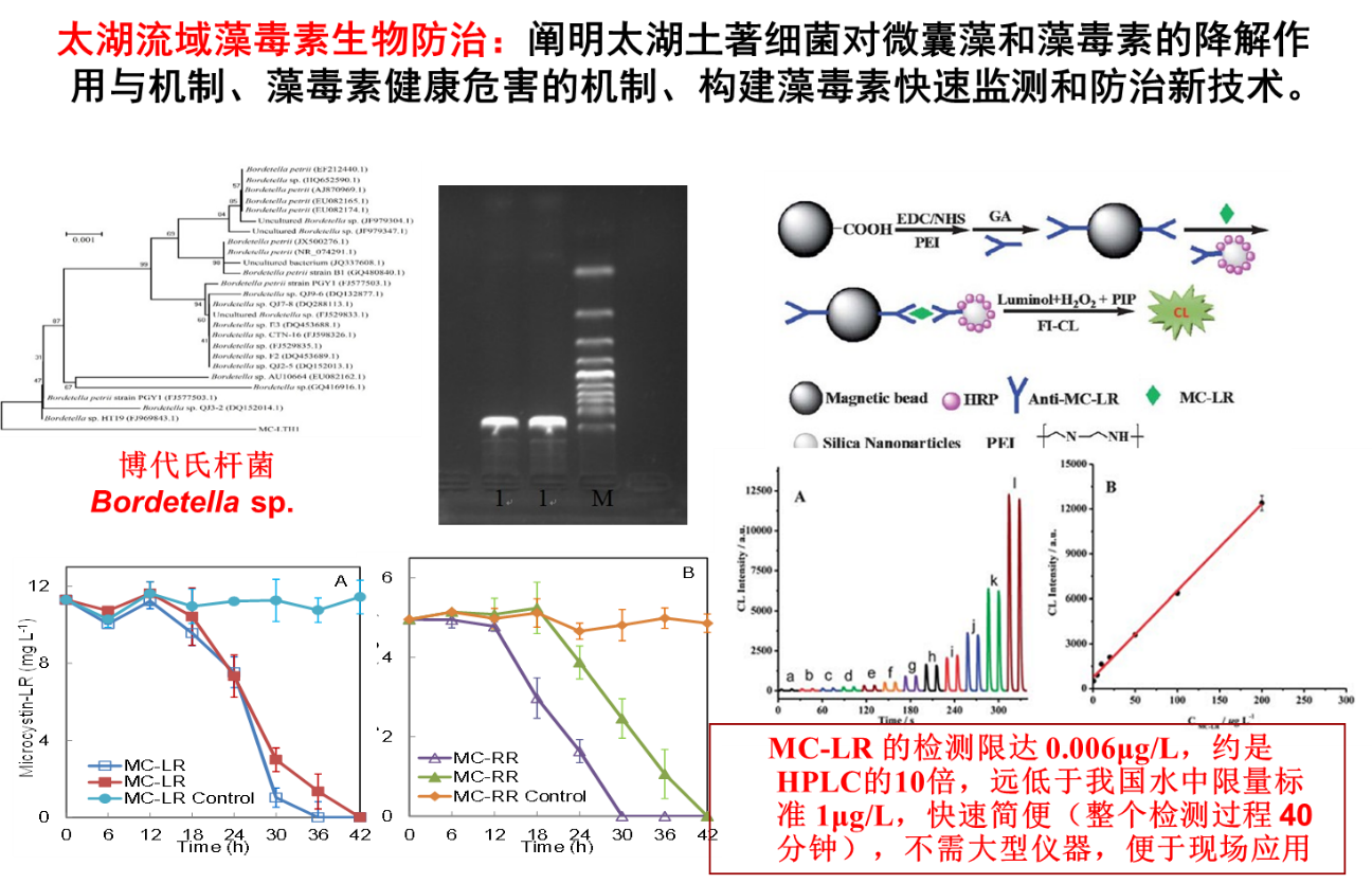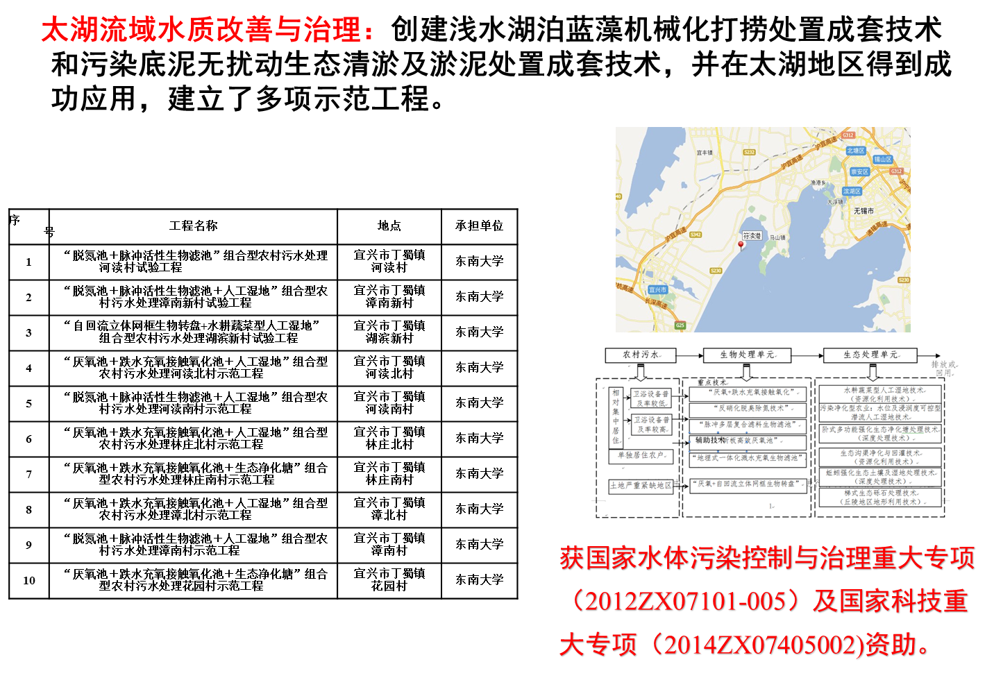 工合作研究,构建多项湖泛有效防治技术及太湖污染生物防治新技术,应用于太湖环境污染的监测、评价与治理。