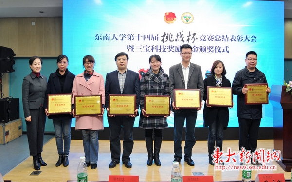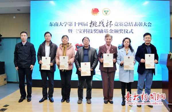 3月16日下午,必威betway西汉姆第十四届“挑战杯”竞赛总结表彰大会暨三宝科技奖励基金颁奖仪式在九龙湖校区人文讲座报告厅举行。杰出校友、南京三宝科技集团董事长沙敏,必威betway西汉姆校长张广军院士、党委副书记兼副校长刘波、学院党委书记李涛等嘉宾、领导出席大会。参与第十四届“挑战杯”全国大学生课外学术科技作品竞赛的指导教师代表、组织院系代表、各获奖团队成员及各院系大学生科技创新骨干500多人参加了大会。
